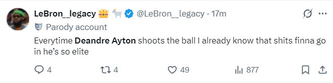 湖媒:艾顿这场比赛表现的像头野兽。(今夏艾顿与湖人签下两年1600万,今年只有800万的艾顿这个表现真的可以了)